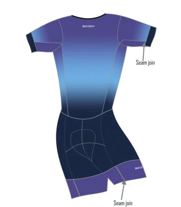 • Zoned fabric construction combining three high performance fabrics to achieve the greatest reduction in drag in specific regions of the body.