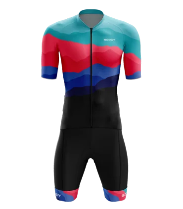 Optimised jersey, optimised for aerodynamics, with a skin-tight fit. Black Bibs are secured on leg with fine silicone gripper from Italy, low profile shoulder straps (also from Italy) provide a comfortable fit, and the long-distance single layer lasered foam chamois, again from Italy, provides a comfortable ride.