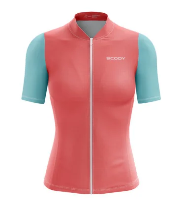 Lightweight A.I.R Optimise Cycle Jersey Women - Coral and Light Blue